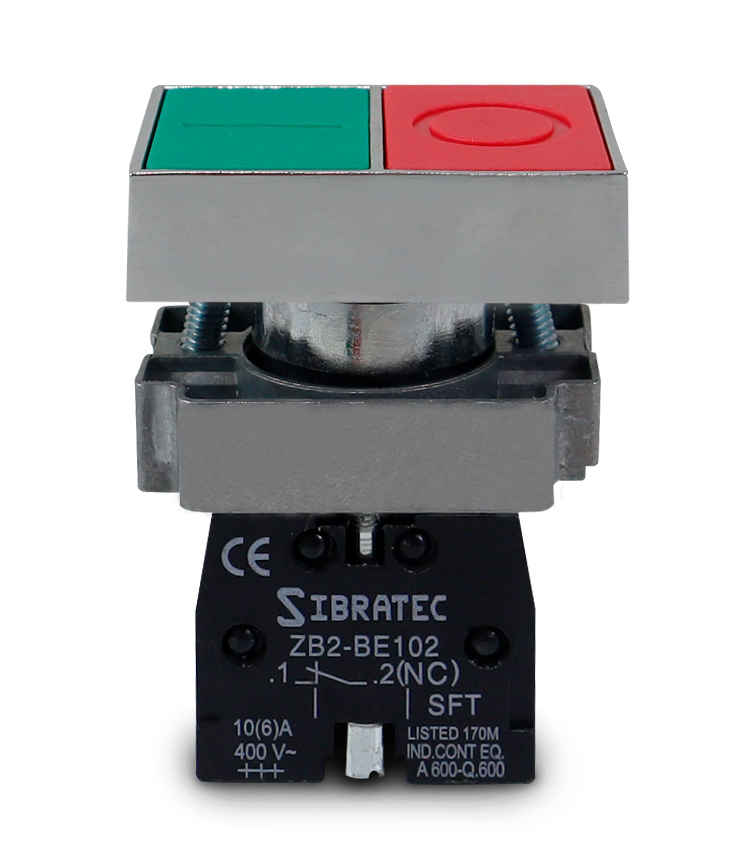 O botão duplo liga/desligada retangular, da Sibratec, é utilizado em máquinas, painéis e outras aplicações do setor industrial.