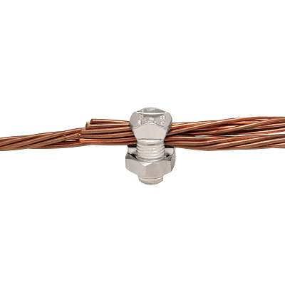 Conector Parafuso Fendido, em material eletrolitico, com prensa cabo e porca em latão.