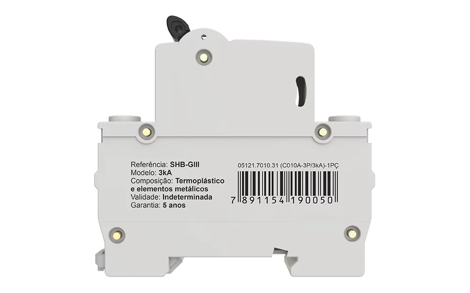 A linha SHB-GIII proporciona instalações elétricas seguras, com capacidade de interrupção de 3kA. Está construida conforme a norma NBR NM 60898 e com certificação INMETRO até 63A. Podem ser aplicados em residencias, comércios e indústrias de baixa tensão em corrente alternada.
