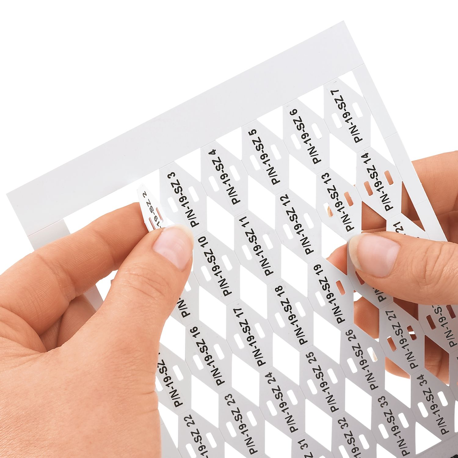 Os marcadores em forma de cartões uniformes podem ser impressos com rapidez e a custos acessíveis com a THERMOMARK CARD. A família de etiquetagem UniSheet US-WMTB oferece marcadores para fixação mediante agrupador de cabos comum no mercado. As tiras de identificação pré-perfuradas podem ser facilmente separadas e montadas. Os cartões oferecem espaço para textos de função.
