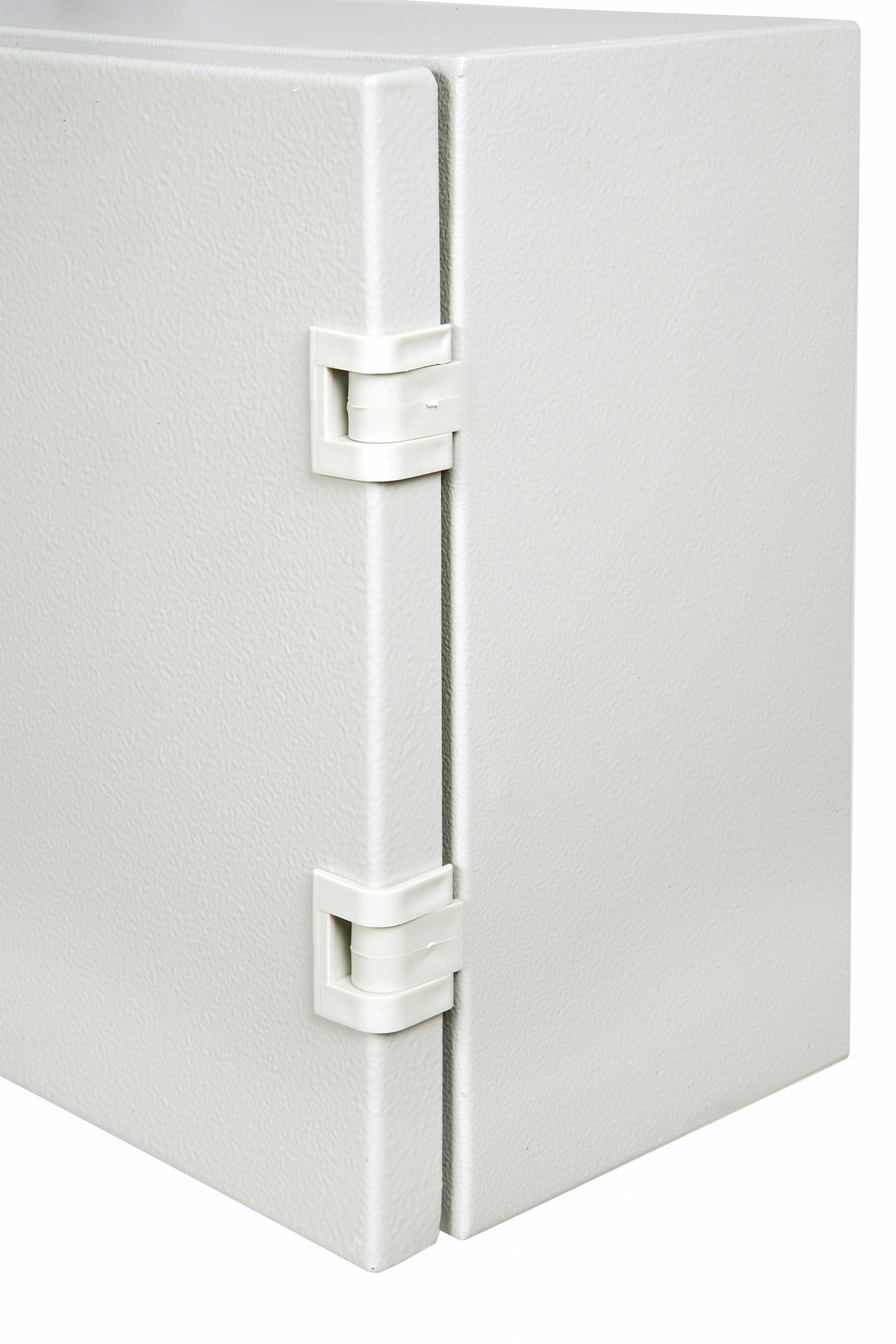Quadros compactos e resistentes, altamente vedados com perfil de borracha, alojado na porta e na flange. Possui pintura epóxi eletrostática em processo continuo, garantindo padronização, além de possui dobradição com alta resistência em polimero à base de nylon, possibilitando abertura da porta em até 180 graus.
